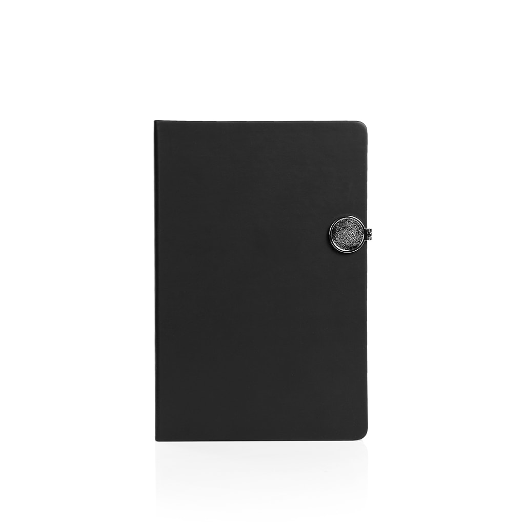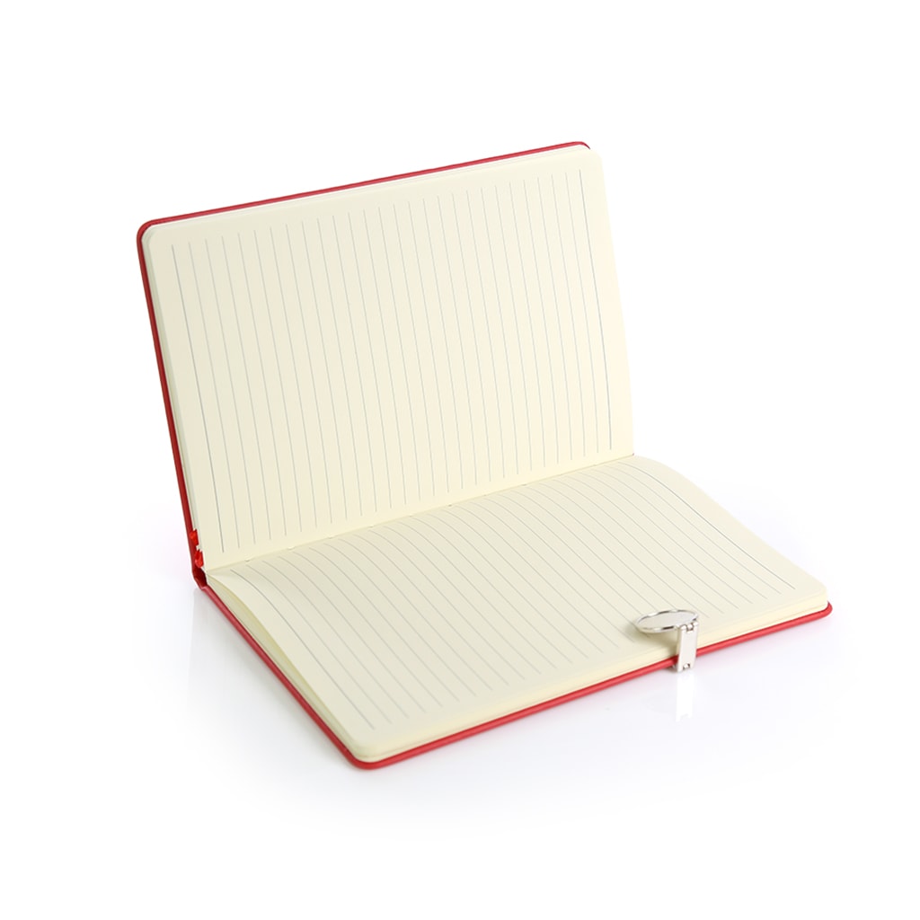 Inner: 80gsm, 80 sheets lined cream paper. Magnet closure with decorate metal plate. Paper pocket inside of back cover. With ribbon marker.